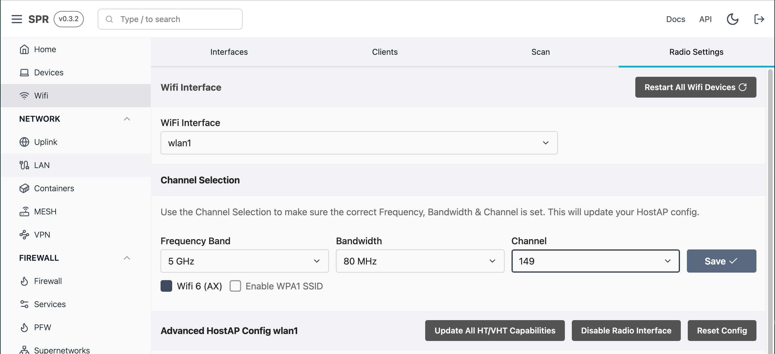 SPR will detect if WiFi 6 is supported. If so, select the WiFi 6 button and hit save. This will configure the AP settings to support WiFi 6 protocol settings.